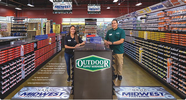 Our Midwest Fastener display is a destination for the Outdoor Supply Hardware customer. Midwest provides us a wide range of products which has increased our customers satisfaction with our fastener selection!